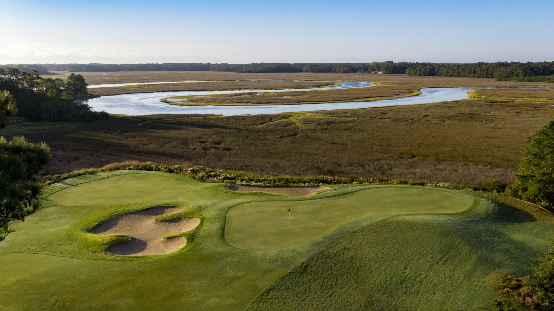 Heron #5 – The signature hole at Carolina National, a par 3 that requires a good tee shot over the marsh to a bulk headed peninsula green. Tee boxes wrap almost 180 degrees around the hole, again presenting a distinctly varied challenge from one to the next. The wind will likely play a significant factor here and will make club selection very important when trying to hit the green in regulation. Recovery shots will be a challenge as well with undulation and bunkers around the putting surface. Take a couple extra seconds to enjoy the scenery of the Lockwood Folly River.